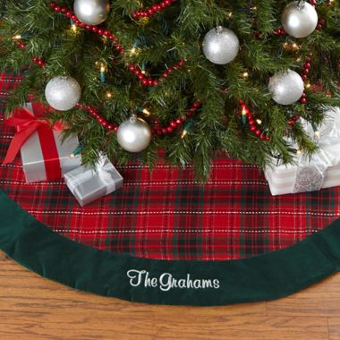Personalized 47 5 Inch Holiday Plaid Christmas Tree Skirt Bed Bath Beyond